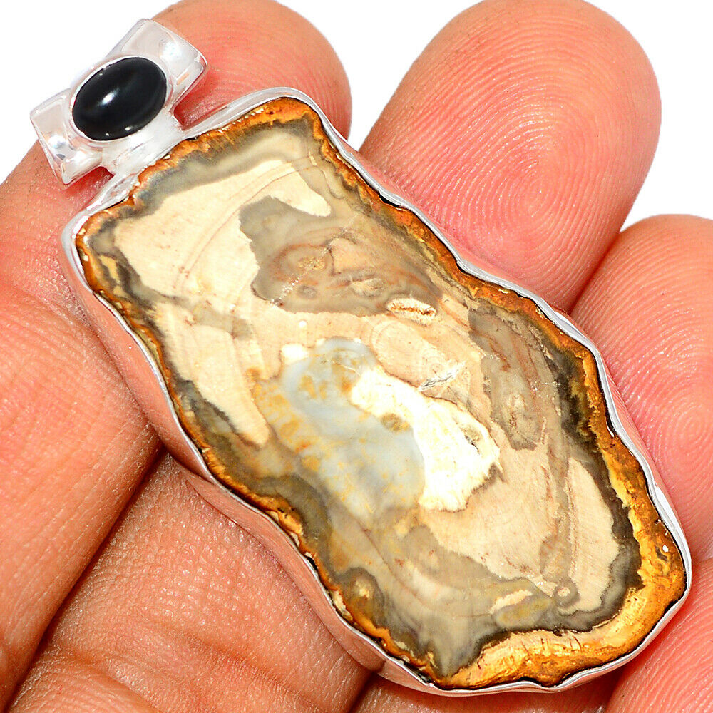 12g Rare Blue Forest Petrified Wood Black Onyx 925 Silver Pendant Bp35289 Xgb Walmart Com